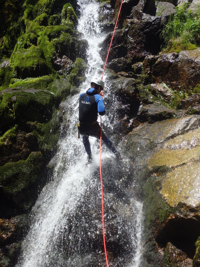 All the aspects of the canyoning are delivered: waterfalls, cristal clear water pool, abseilings, jumps and slides included the famous “Icare’s slide”, wich one will give you multiple sensations.