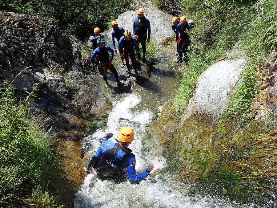 The canyoning, ludical sport water activity, is the association of a myriad of activites. Therefore, to progress all the way of a torrent, we’ll have to execute jumps and slides into natural clear water pools. Moreover, you’ll perform abseils all along waterfalls, de-escalation to follow the winding river.