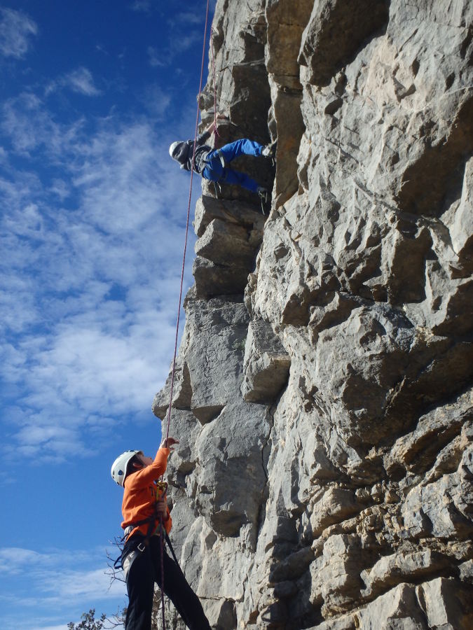 In a second time, you’ll learn the basic knoweldge as how to rope you up, to tie a knot, to belay another climber, to deal with the slingshot top-rope lowering.