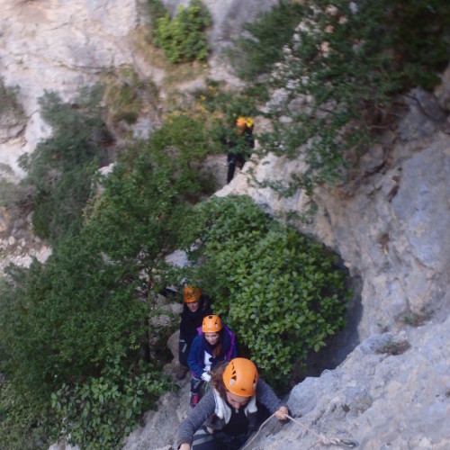 Programm: hiking, climbing by the noth face of Pic St-Loup, abseilings, crossed over the river Hérault, descente of dry canyons…